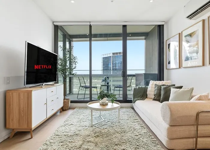 Waterfront 2-Bedroom Apartment With Pool, Gym & Free Parking距离Batman Park公园不远,步行只需18分钟,坐落在墨尔本中心。 该住宿场所位于墨尔本,靠近维多利亚港达尔博拉码头,给旅客提供热浴盆 和一个室内游泳池。